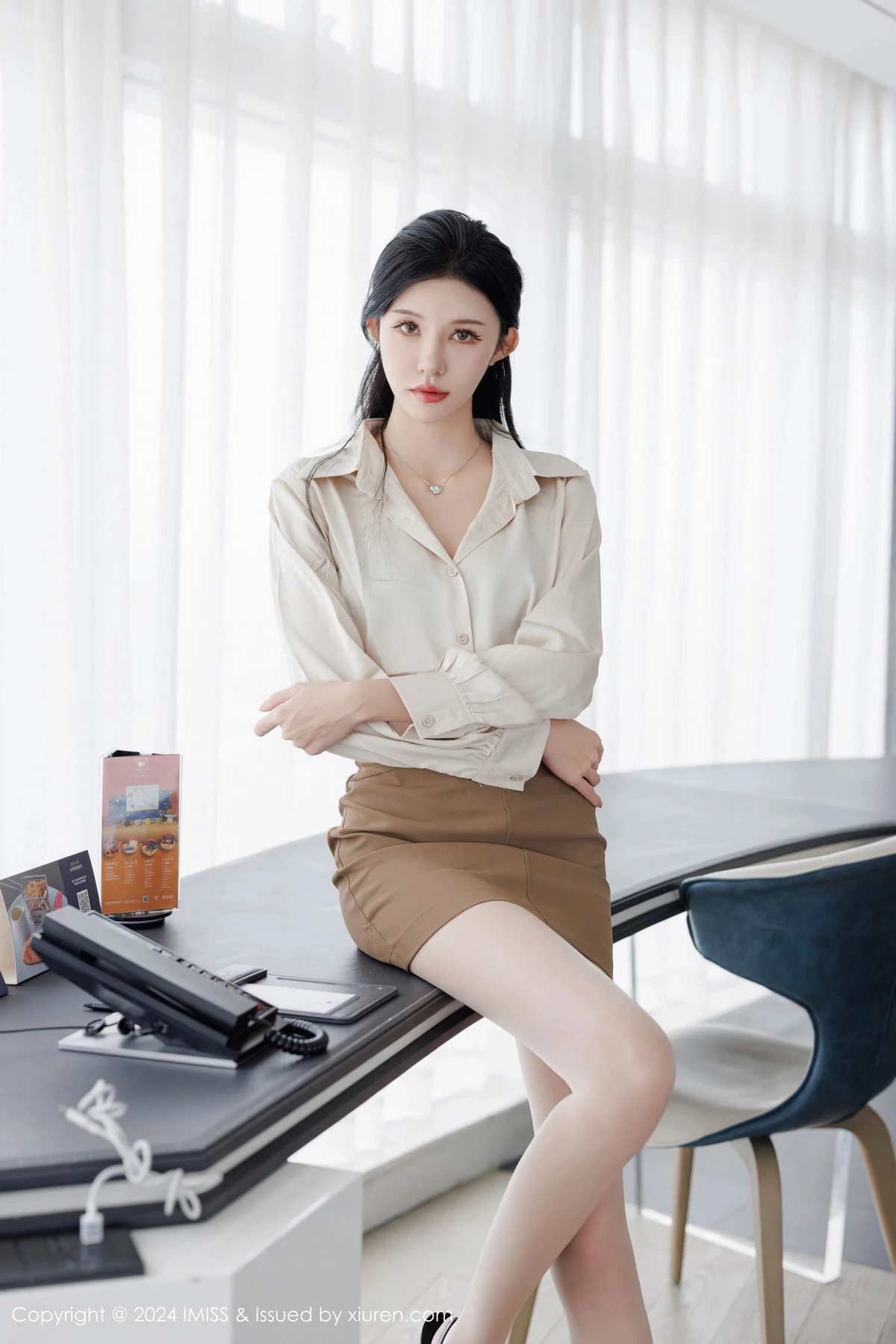 [IMISS爱蜜社]Vol.767_模特泥鳅鳅性感时尚装扮米色上衣配短裙露超薄肉丝完美诱惑写真44P
