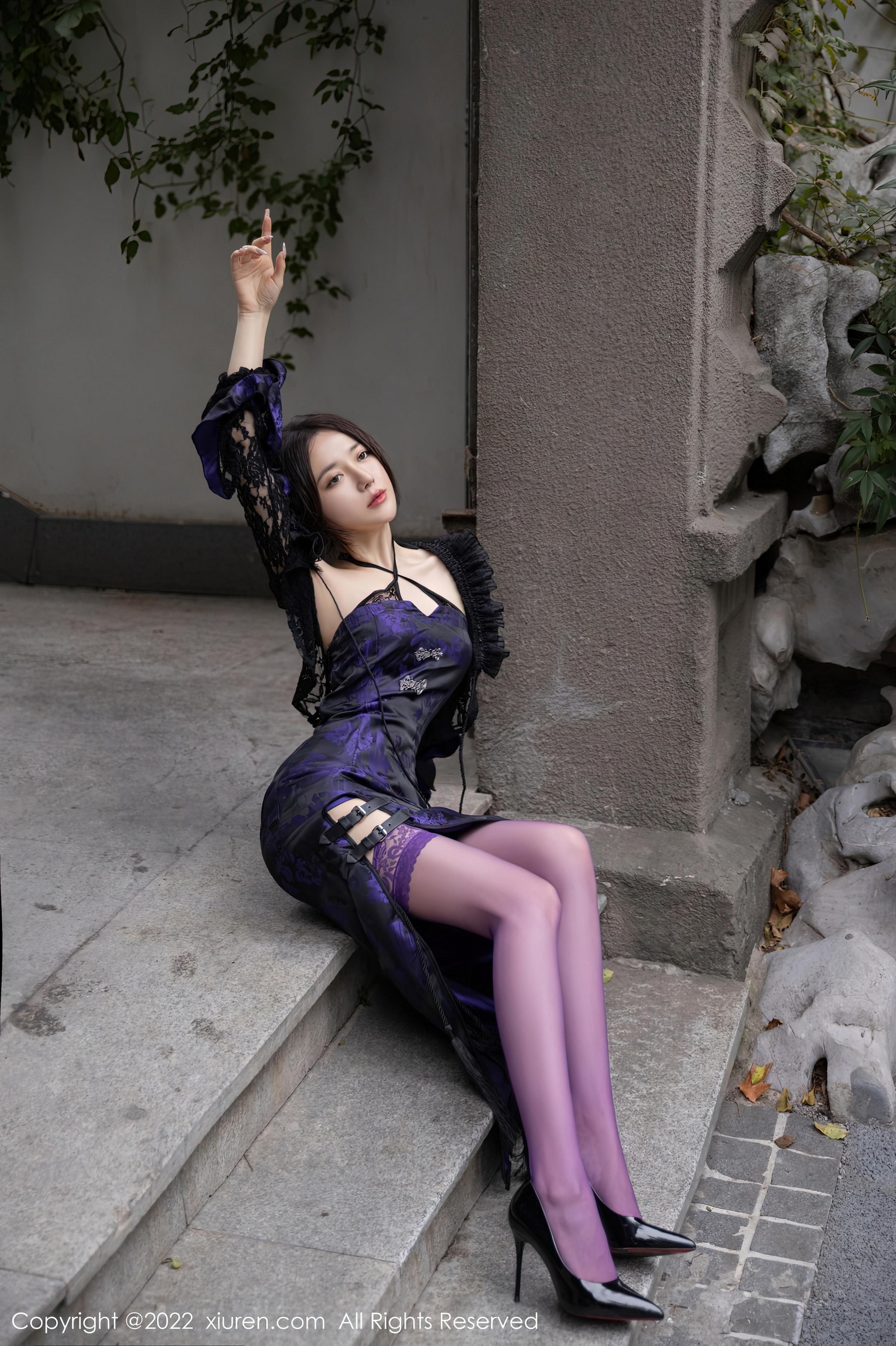 [Xiuren秀人网]2022.12.30 NO.6074 鱼子酱Fish 黑色吊带连衣裙加紫色丝袜美腿性感私房写真集