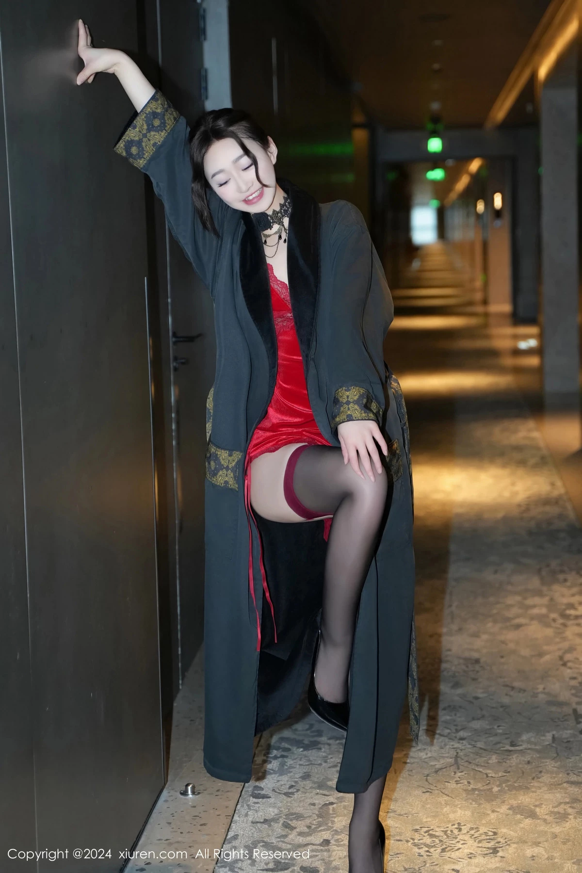 [XiuRen秀人网]No.8547_模特软糖爱喝奶性感红色吊带短裙配黑丝吊袜秀曼妙身姿诱惑写真73P