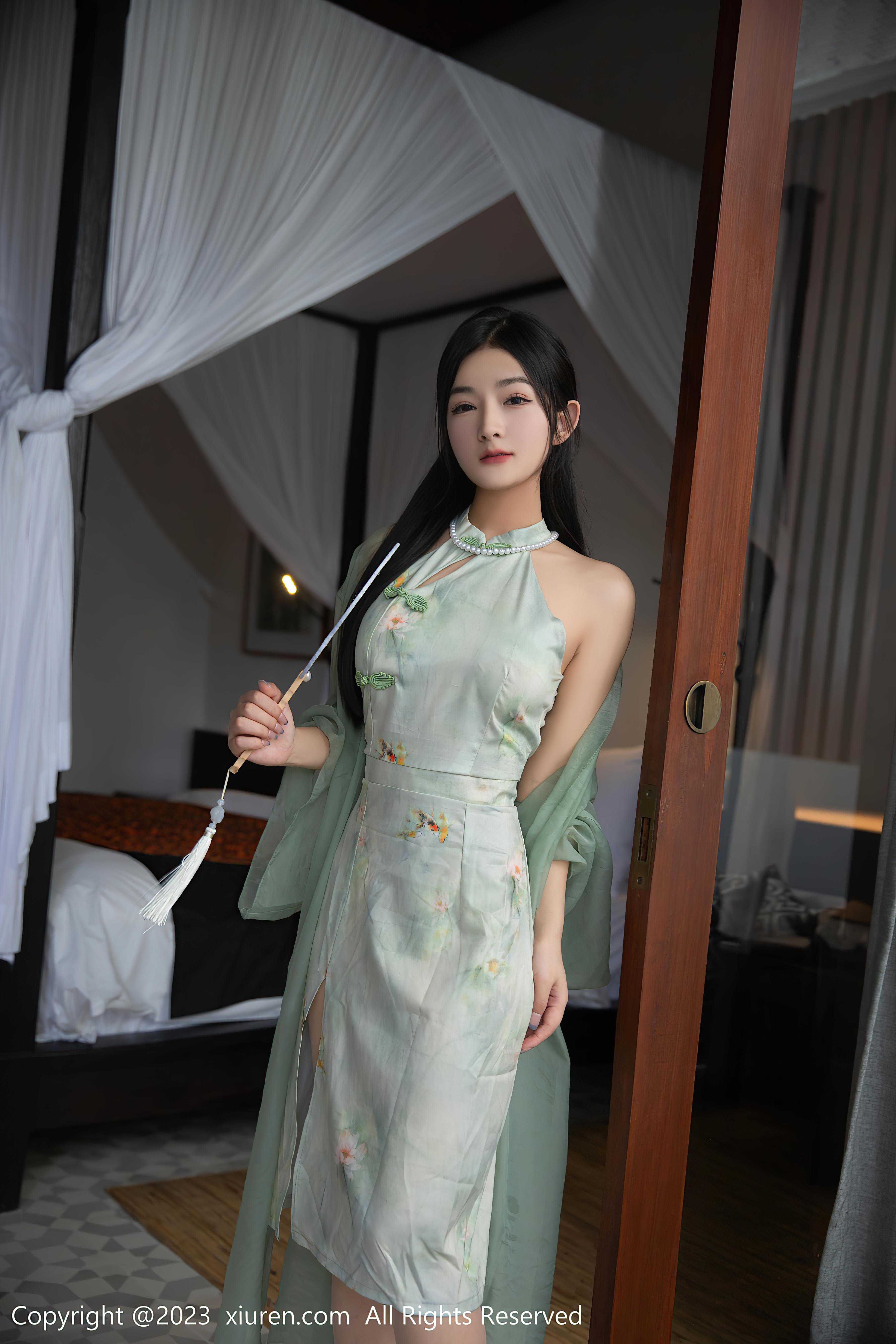 [XiuRen秀人网]2023.06.08 NO.6880 谭小灵 青色透视披肩与旗袍加肉丝美腿性感私房写真集